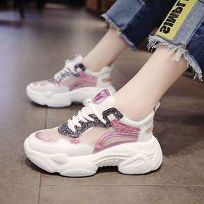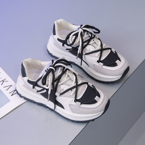 适用老爹鞋女ins潮2022年春季新款小白鞋网面厚...