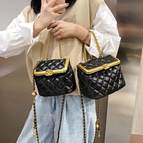 超火银扣韩版女包2022新款洋气小香风菱格链条腋下...
