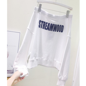 超火cec卫衣女春秋薄款新款韩版ins潮一字肩露肩...