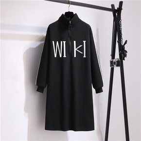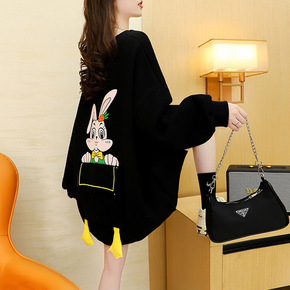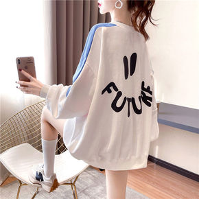 2021新款 简约字母中长款慵懒风卫衣女连帽宽松薄...