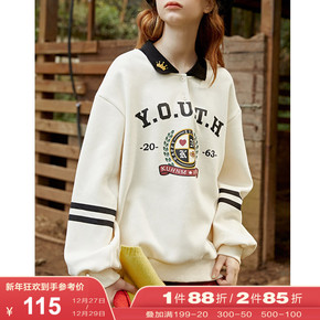 超火加绒套头卫衣女2021年新款秋冬翻领上衣Pol...