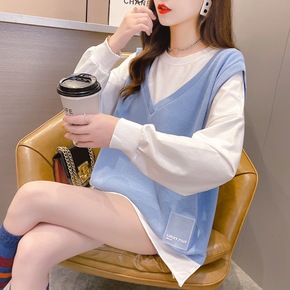 秋冬新款超火cec假两件卫衣女装韩版宽松圆领长袖上...