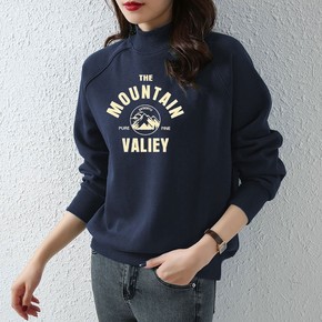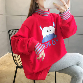 半高领加绒加厚卫衣女秋冬装2022新款初中高中学生...