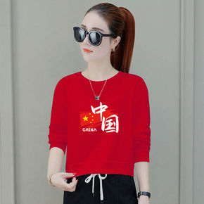高腰短款红色卫衣女宽松本命年2022春秋新款减龄印...