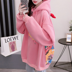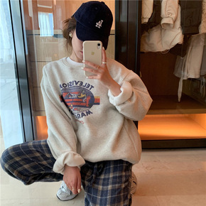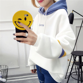 超火连帽卫衣女学生韩版宽松慵懒风印花秋新款长袖薄款...