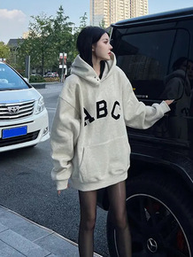 秋冬ins慵懒风连帽卫衣女加绒加厚2022年新款宽...