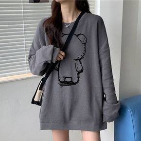 纯棉反光小熊卫衣女2022春秋新款设计感ins潮宽...