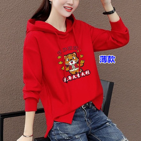 虎年本命年秋冬潮卫衣女连帽红色宽松大码薄款超火in...