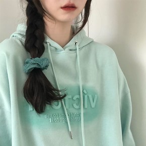 感薄荷绿连帽加绒卫衣女2021新款秋冬薄款宽松慵懒...
