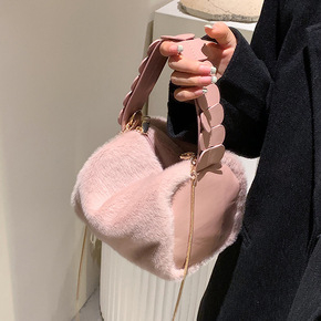 秋冬超火小包包新款包包女小众链条斜挎包时尚手拎毛毛...