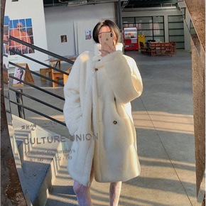 中长款白色2021秋冬新款韩版加厚冬季立领羊羔毛外...