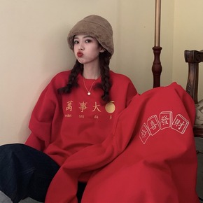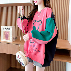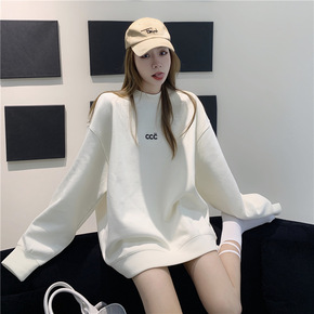 2020新款秋冬女装韩版宽松连帽加绒加厚套头天线宝...
