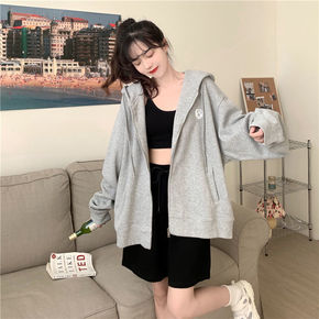 2021新款韩版宽松盐系超火连帽短款卫衣女春秋薄款...