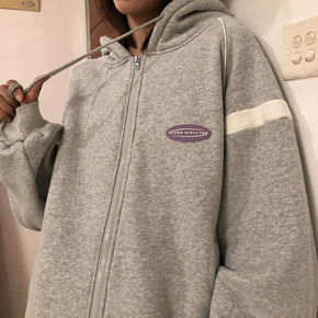 炸街350克复合好质量加绒加厚连帽卫衣女秋冬韩版宽...