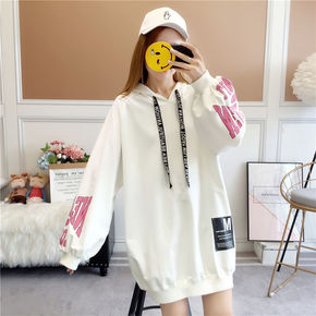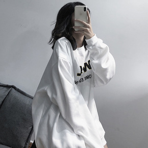 ins超火白色卫衣女秋冬2021年新款加厚over...