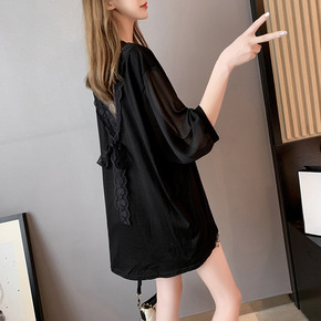 心机蕾丝露背半袖大码女装上衣宽松韩版胖妹妹夏季网红...