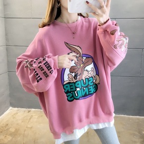 超火CEC卡通假两件薄款卫衣女2021秋季新款韩版...