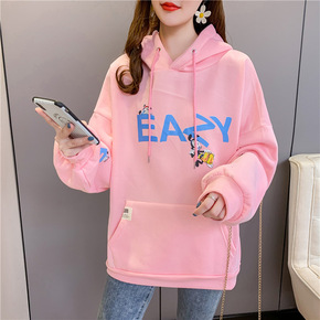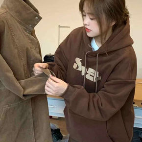 棉加绒秋冬季美式甜美INS学生超火宽松连帽卫衣女原...