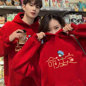 不一样情侣装冬季卫衣红色2021新款潮流网红ins...