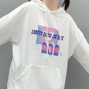 原创美式棉印花宽松卫衣女春秋薄款2021年新款连帽...