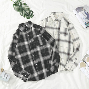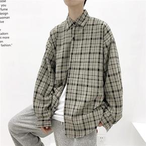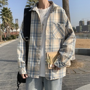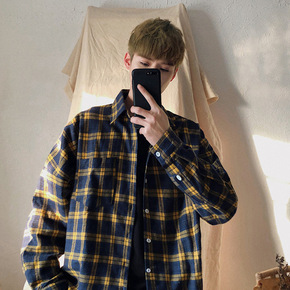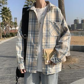 2020春秋韩版超火ins格子衬衫男潮流港风青少年...