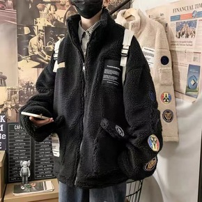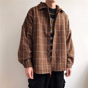 青年超火外套男士秋冬加厚格子韩版宽松潮流学生港风新...
