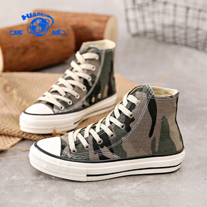 环球ins超火迷彩高帮帆布鞋2021春季新款休闲韩...