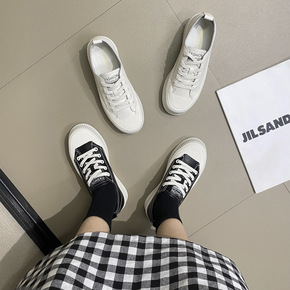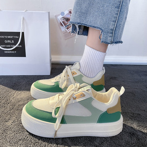 真皮拼接锦布ins超火休闲运动鞋女 2021春季新...