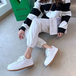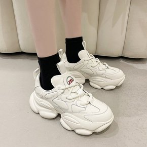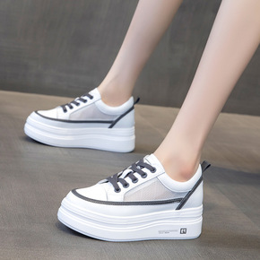 断码特价新款超火老爹鞋女真皮休闲透气小白鞋厚底印花...