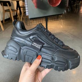 超火韩国机车老爹鞋女2021秋季新款厚底松糕底百搭...