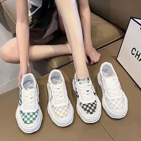 厚底帆布鞋女夏款2022年新款超火棋盘格鞋松糕软底...