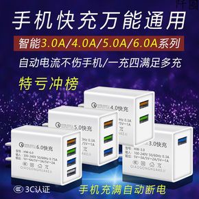 适用通用快充4口充电器手机安卓华为苹果USB多插头...