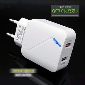 QC3.0手机墙充充电器双USB带灯快充充电器 一...