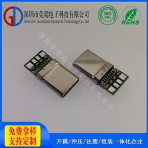 深圳莞端TYPE C公头24P夹板拉伸壳LCP灰胶...