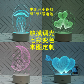 USB充电款七彩遥控触摸小夜灯电池款3d小夜灯图案...