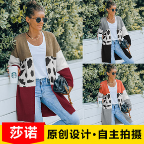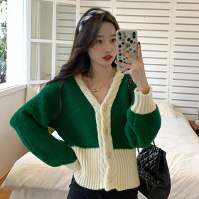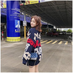 新款字母提花毛衣女 秋冬慵懒风V领针织开衫跨境洋气...