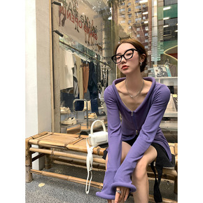 双拉链喇叭袖简约风针织衫早秋新款小众设计小衫外套女...