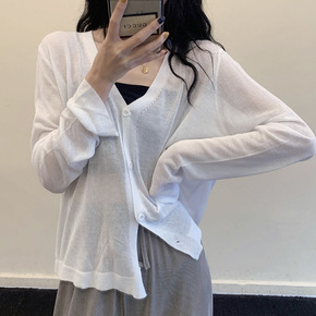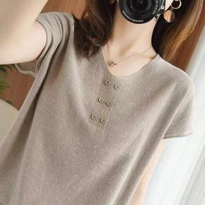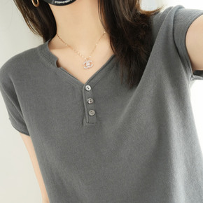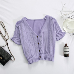 超火cec短袖女短款v领针织衫开衫2021夏季新款...