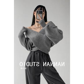 嘉织8T8062 重磅级针织拍肩上衣 慵懒风毛衣开...