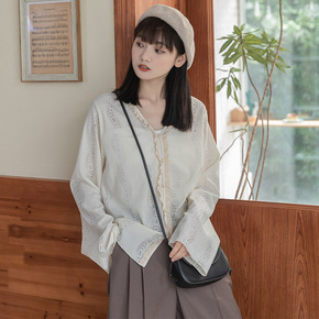 空调房刚需 羊毛混纺 小土星刺绣针织厚开衫毛衣外套...