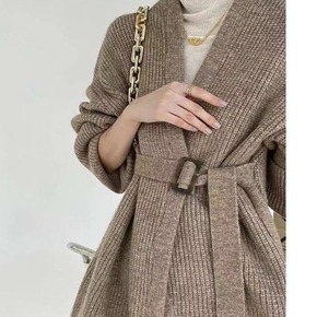 韩国chic秋冬复古慵懒风麻花纹宽松厚实保暖长款开...