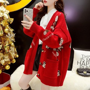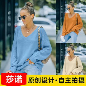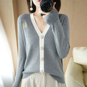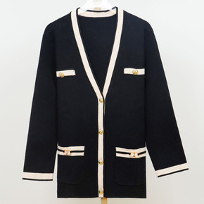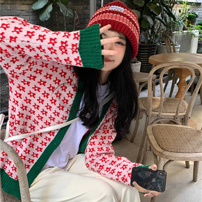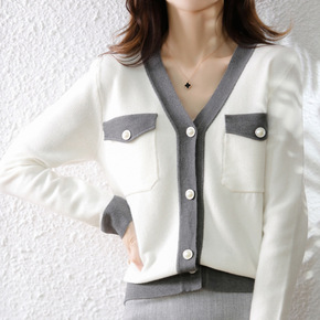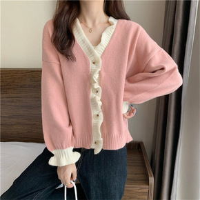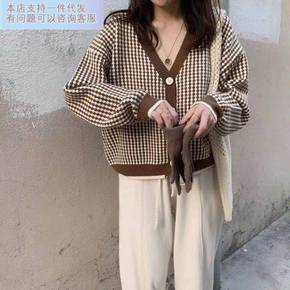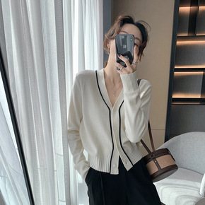 毛衣韩国2022秋季新款宽松毛衣开衫衣时尚撞色V领...