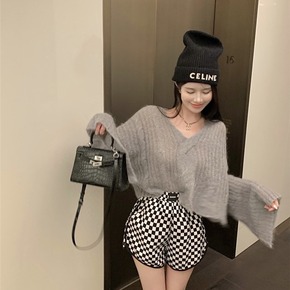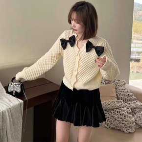 2022春季新款小香风菠萝针织开衫女士V领短款长袖...