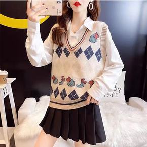 费尔岛马甲女2021新款针织背心毛衣马甲女上衣外穿...