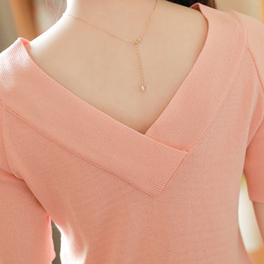 冰丝针织衫短袖夏季2022年新款女装薄款半袖V领短...