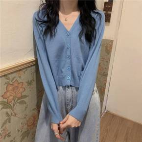 2022新款春秋季针织开衫女韩版短款领内搭长袖薄款...