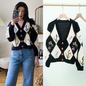 针织衫女开衫款短刺绣小花针织开衫2022新款甜美小...
