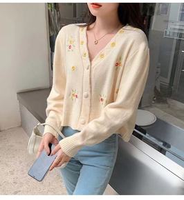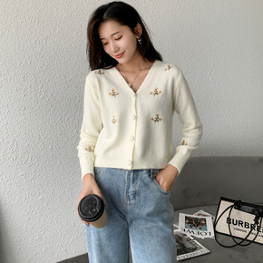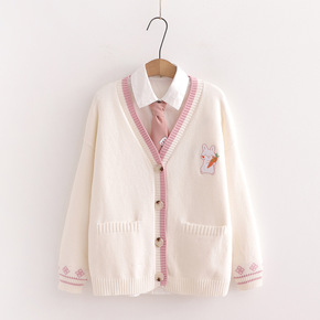 日系森女19秋装小清新猫咪刺绣开衫毛衣外套学生女士...