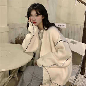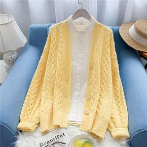 女装2021秋冬季新款潮韩版针织毛衣开衫麻花宽松学...