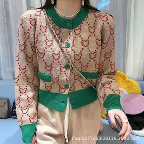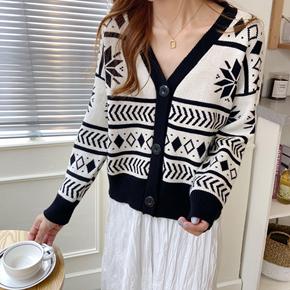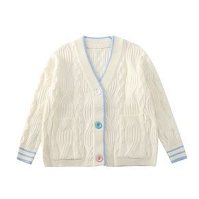 开衫小香风卡通图案针织衫复古少女外套撞色百搭学生上...
